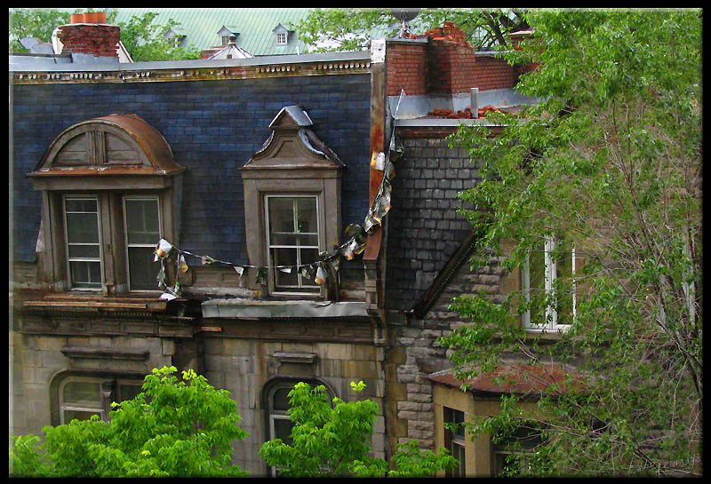 An old building... some old St-Patrick banners and in relation with that last... Some green to revival the scene...